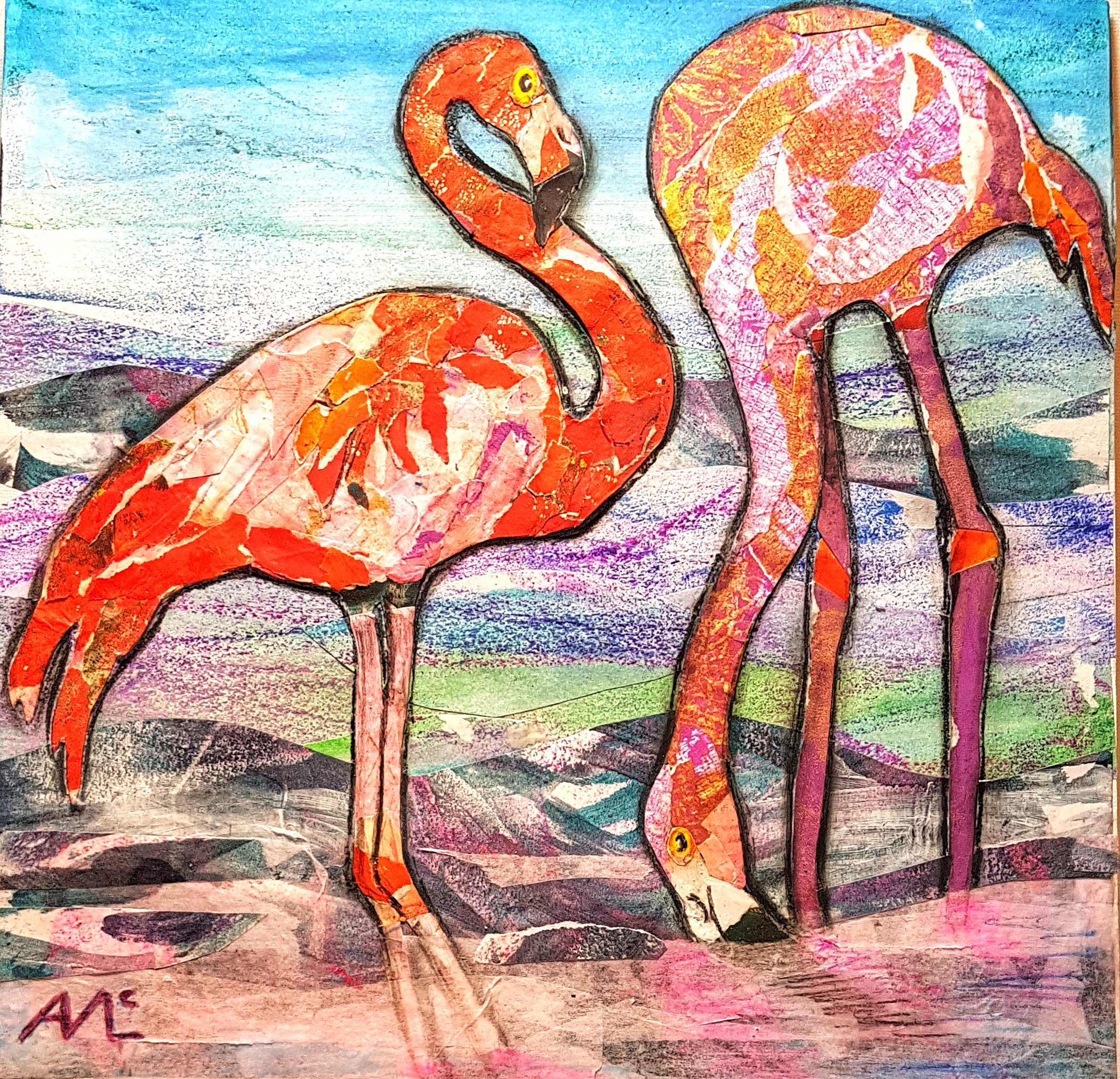 I created this collage with colours in mind .Pink was my favourite choice so I naturally chose to do a collage of flamingos. Pink is for me a soothing colour and I need it in those hard times.Just to look at it quiet my mind!