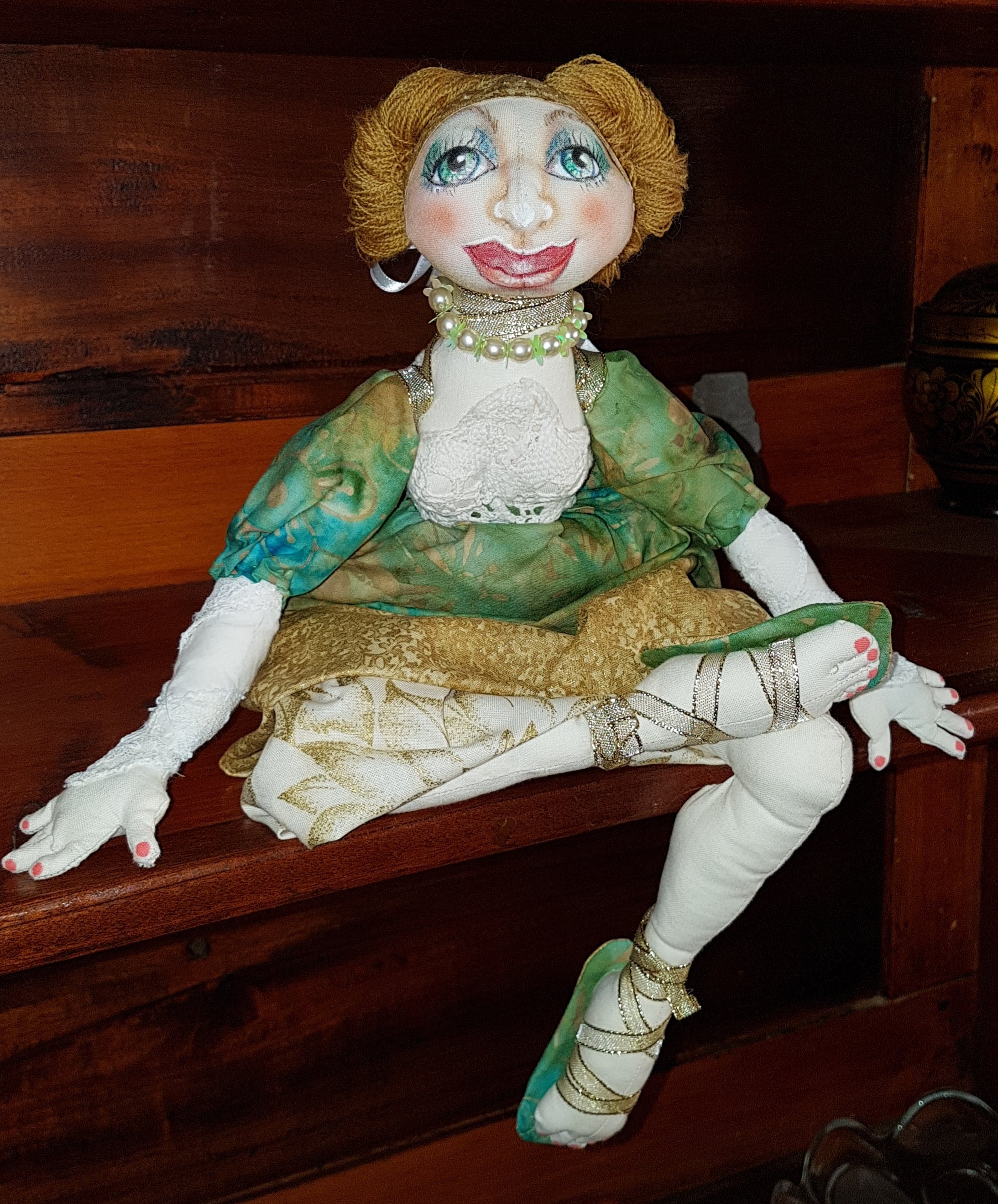 My latest doll is enjoying the Winter sunshine and is joining the poppies appearing everywhere at the moment!