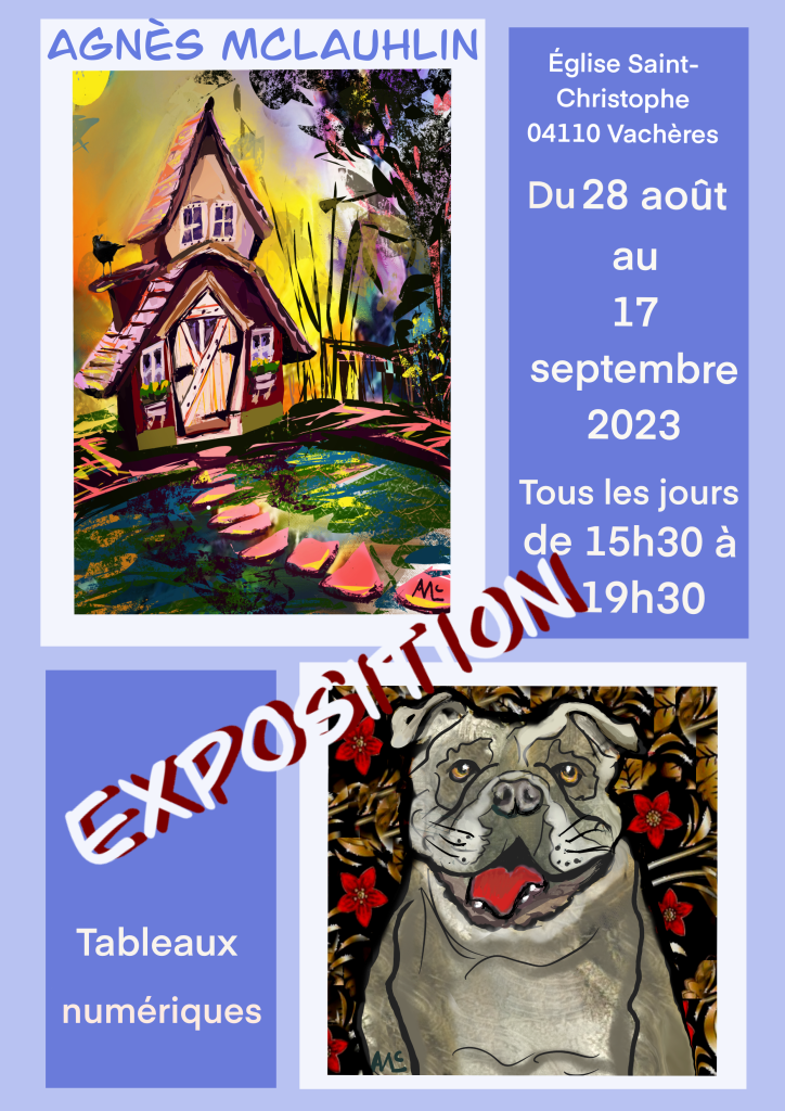 Exhibition in Le Luberon August 25, 2023Agnès McLaughlin If you happen to be in that glorious part of Provence …. Share this:TweetMore Click to email a link to a friend (Opens in new window) Email Share on Tumblr Related